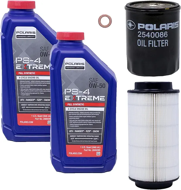 Edwards Extreme Oil Change for 2007-2014 Polaris Sporstman 800 ATV contains; Two Polaris Extreme 0W-50 Oil Quarts, One Polaris 2540086 Oil Filter, One 7082101 Aftermarket Air Filter, One Copper Washer