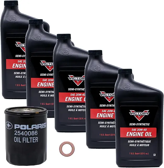 Edwards Oil Change For Victory Motorcycles With 100 & 106 Cubic Inch Engines Contains; Five Victory 20W-40 Oil Quarts, One Polaris Oil Filter, One Copper Washer