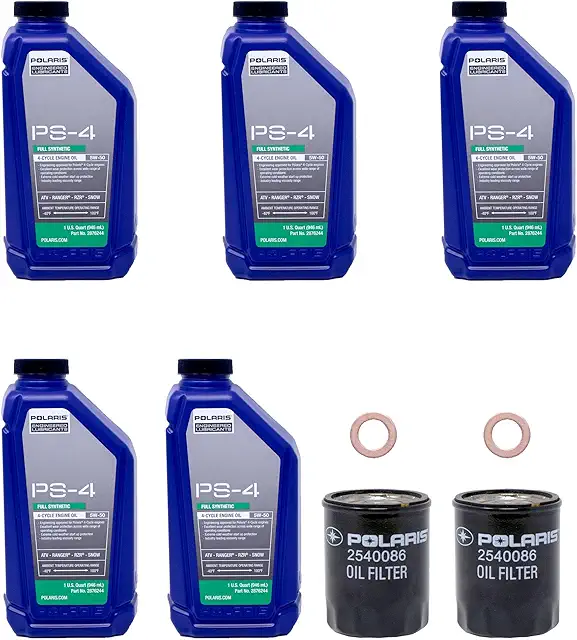 Edwards Bundle includes: 5 Quarts of Polaris PS4 5W-50 Oil, 2 Polaris Oil Filters, 2 Coppers Drain Washers, Edwards Spout, Towels and 2 sets of Gloves